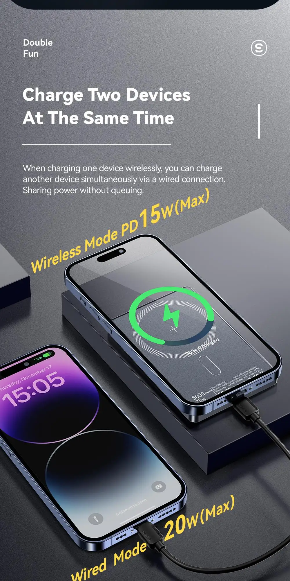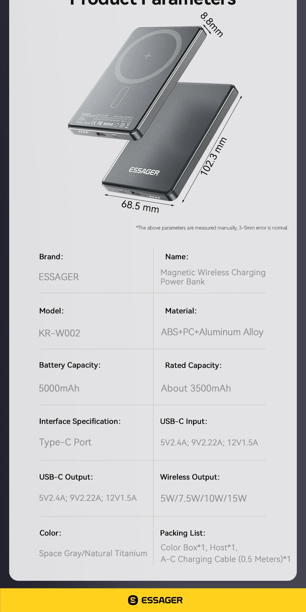 Carregador Power Bank 5000mAhde ( LIDER SHOPP) Essager Thin Power Bank 5000mAh para iPhone 15, 14, 13 Pro Max Power Bank PD 20W Carregador magnético sem fio