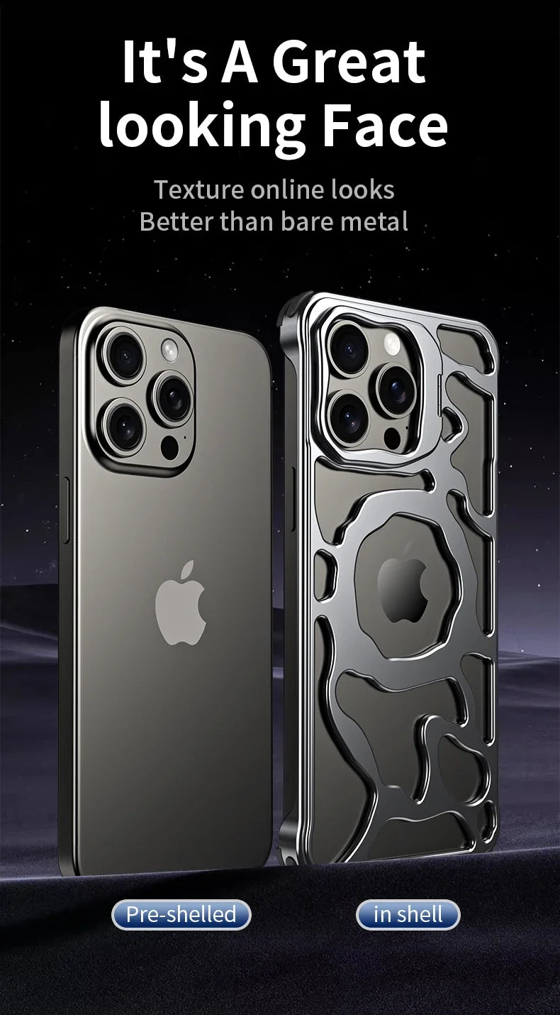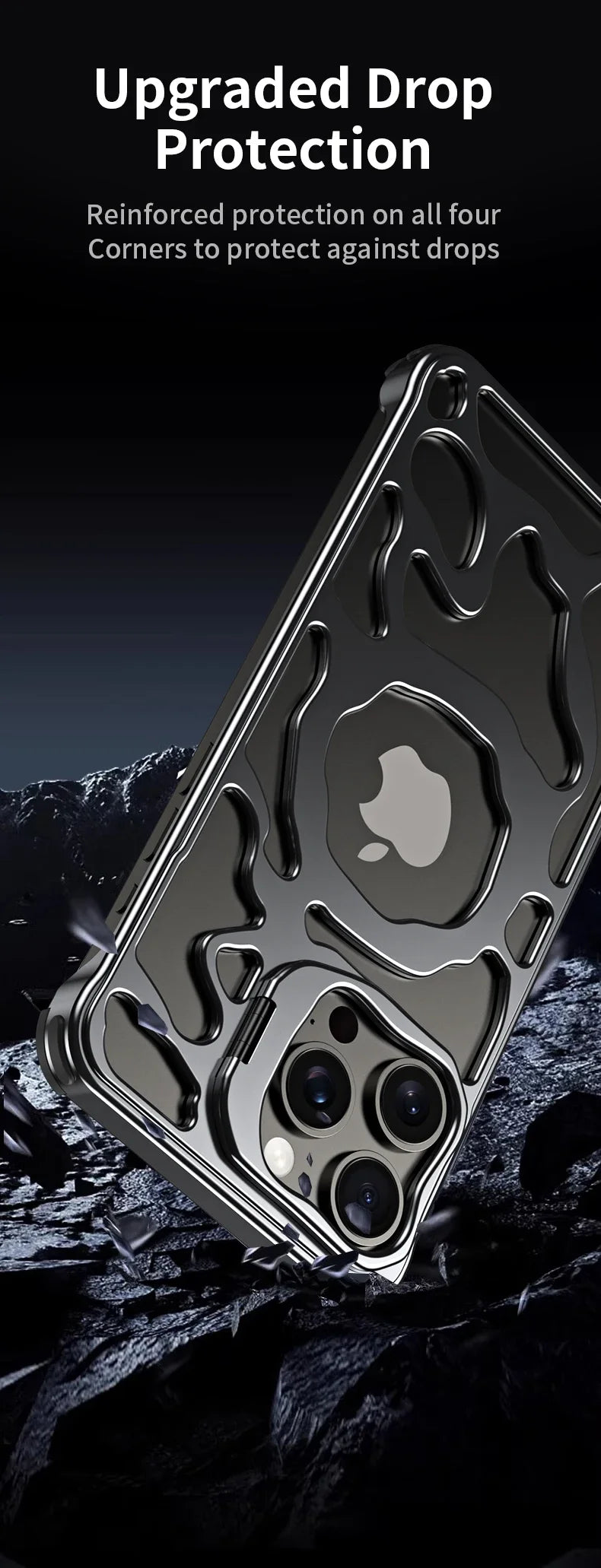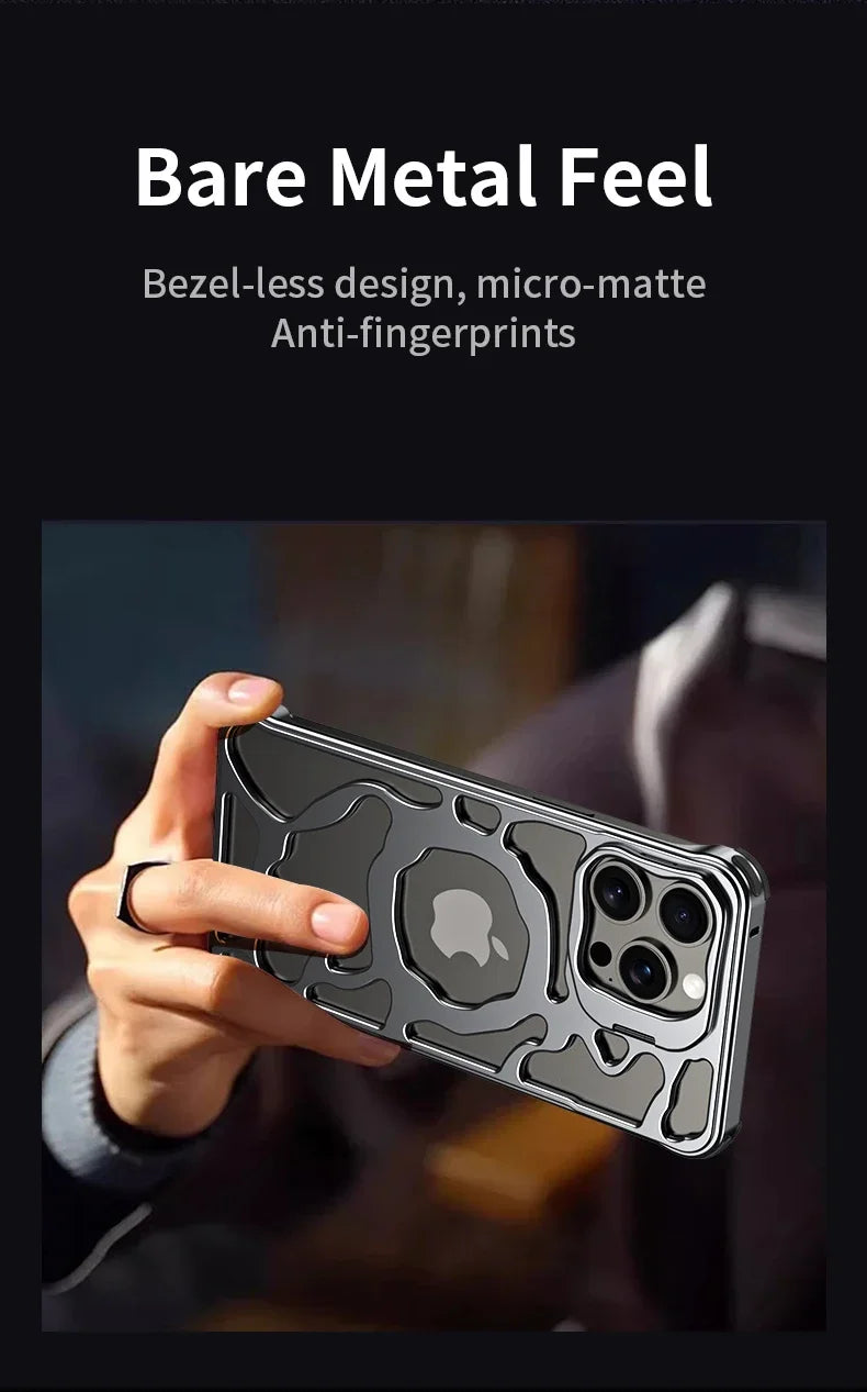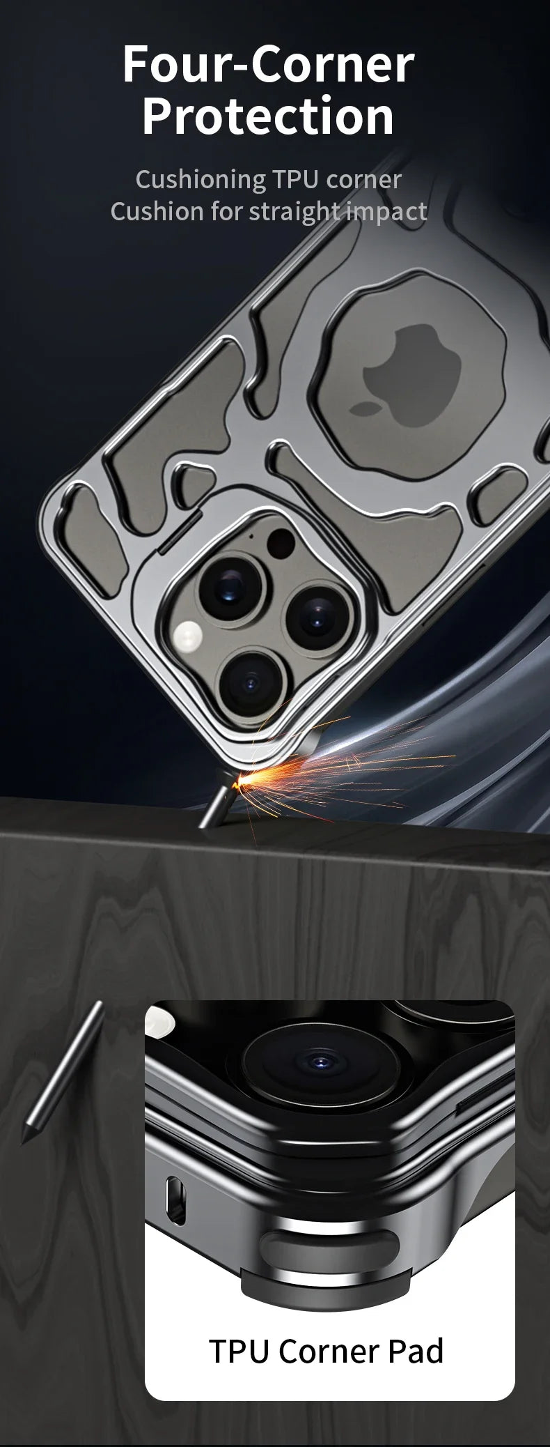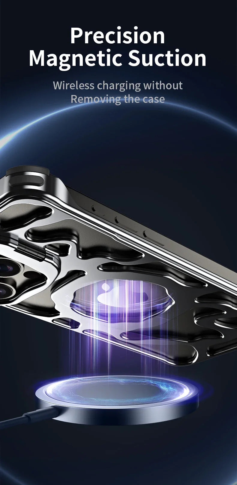 Magnetic Metal Phone Case For iPhone 13 14 15 16 Pro Max Invisible Bracket Aluminum Alloy Removable Heat Dissipation Phone Cover